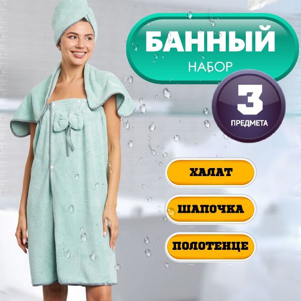 Набор махровый для бани, сауны, ванны, спа женский 3 предмета( Парео