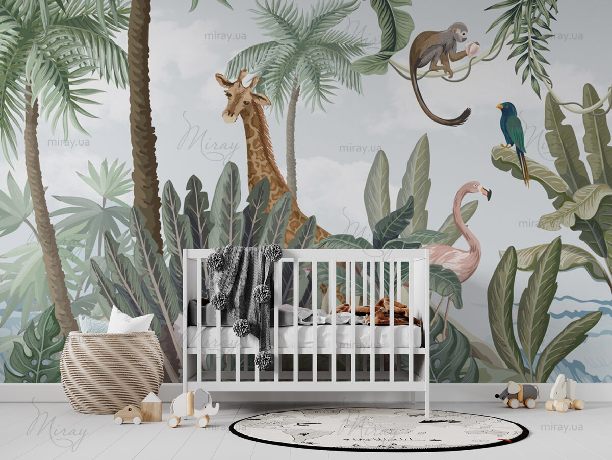 Детские джунгли с тропическими животными фотообои купить на заказ, цены