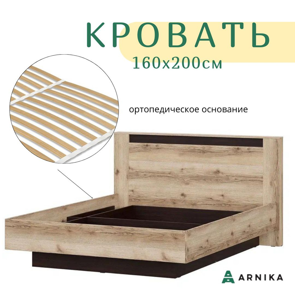 Кровать с гибким основанием "Прага 160х200" Дуб Делано/Дуб Венге купить