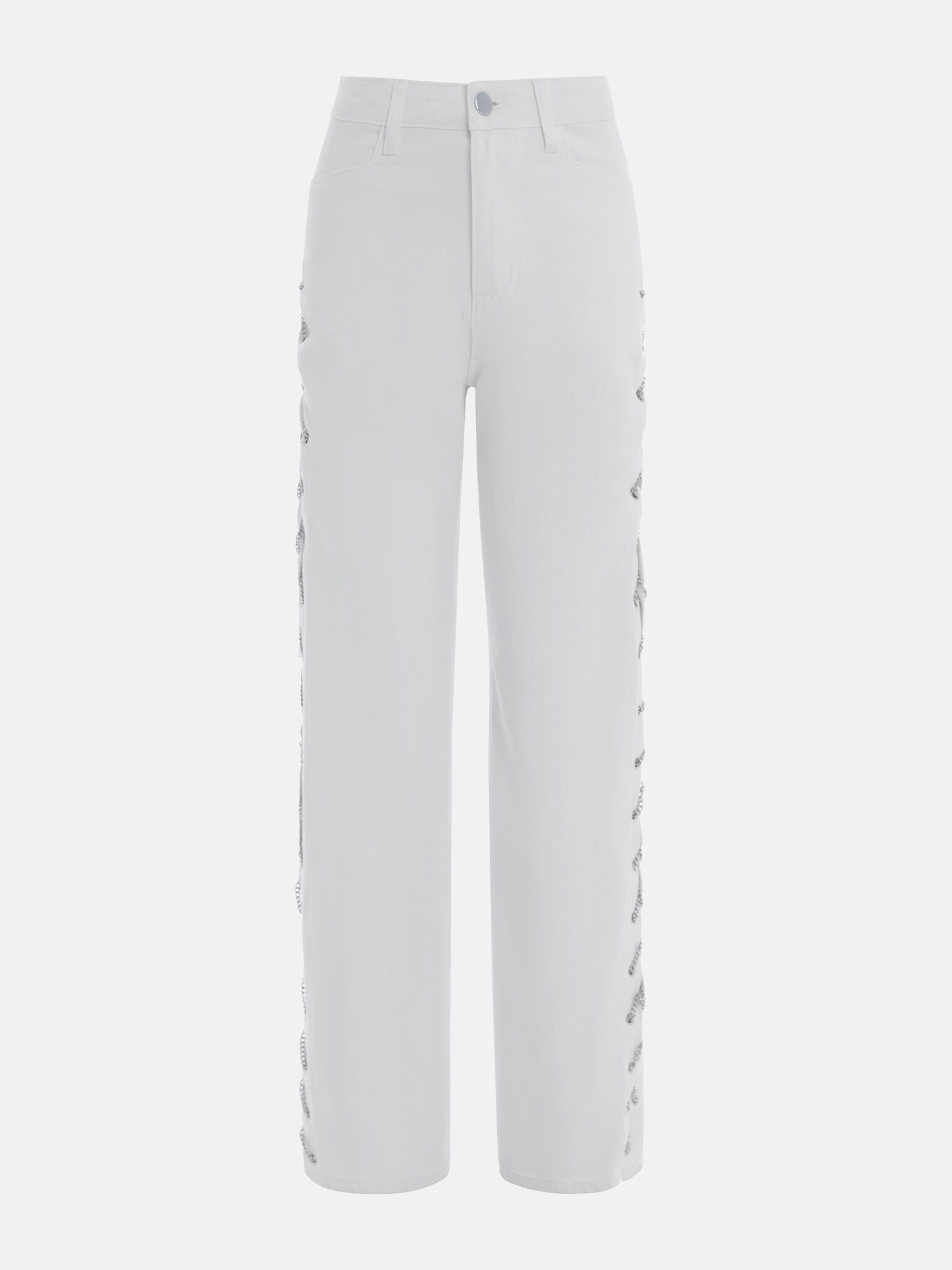 Прямые джинсы с цепочным декором по бокам :: LICHI