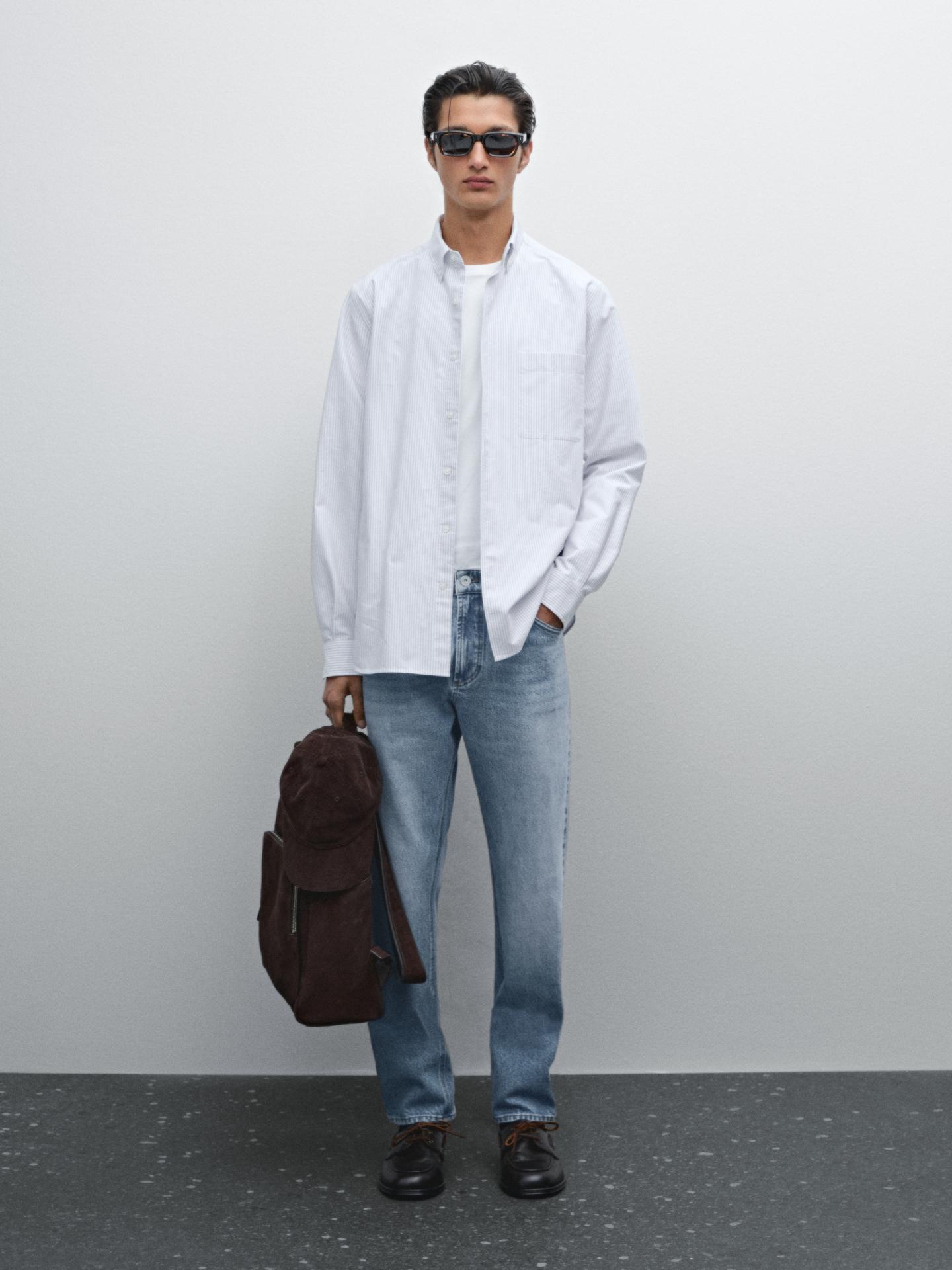 Рубашка оксфорд из 100% хлопка в полоску · Средний Синий · Рубашки