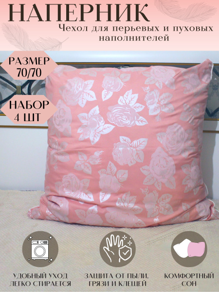 Наперник 70x70 см на молнии 4 шт Комфорт 37, защитный чехол для подушки