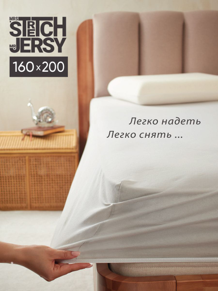 Простыня Stretch Jersy трикотажная натяжная на резинке по всему