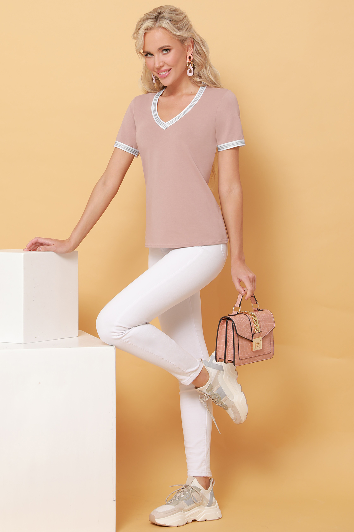 Купить Блузка бежевая с серебристым кантом по цене: 830 ₽ арт. Б-1656