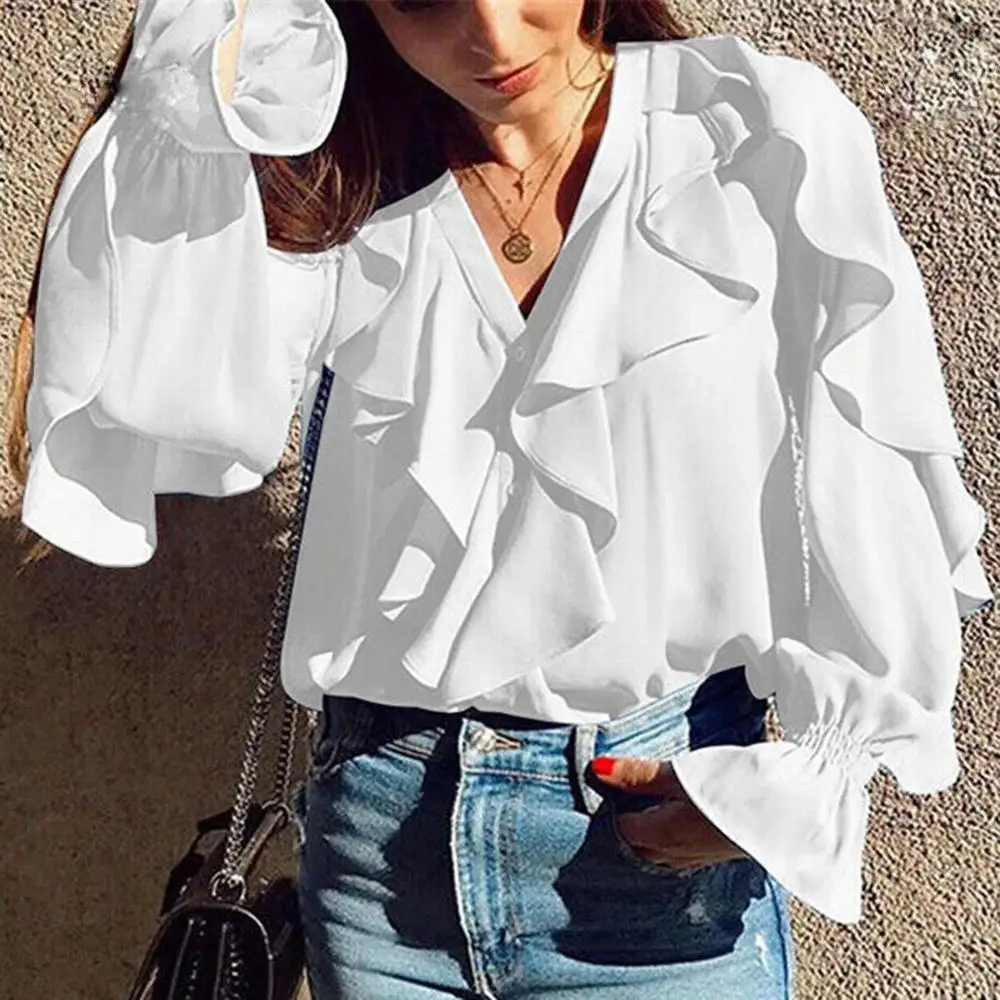 Женская блузка с v-образным вырезом и длинным рукавом, Повседневная