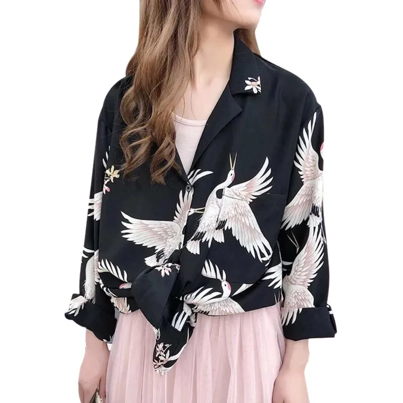 Женская блузка с принтом, рубашки с длинным рукавом, v-образный вырез