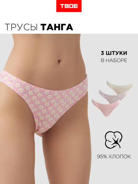 Комплект трусов танга ТВОЕ, 3 шт