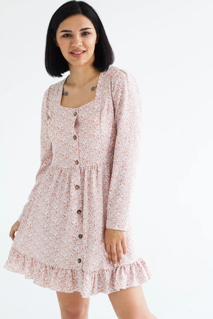 Легкое романтическое платье Бежево с цветочным принтом 42-44 0117-1