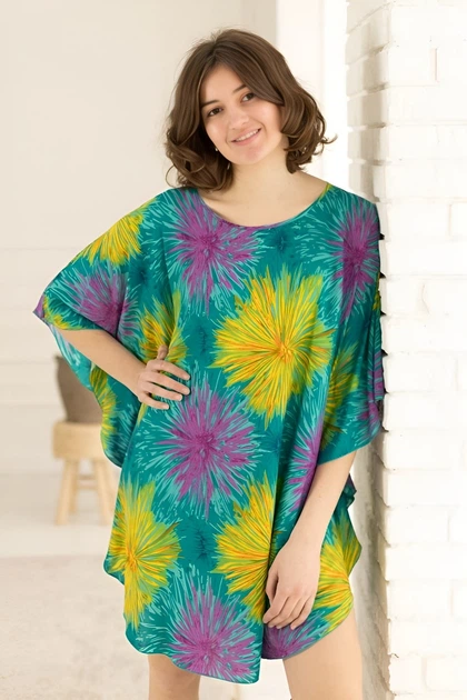 Туніка з яскравим принтом і боковими стяжками ONE SIZE 46-60 р Зелено